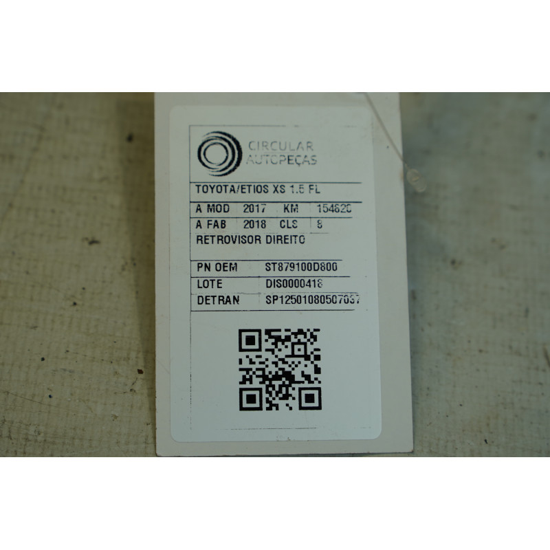RETROVISOR DIREITO TOYOTA ETIOS XS 1.5 FLEX 16V 2017/2018