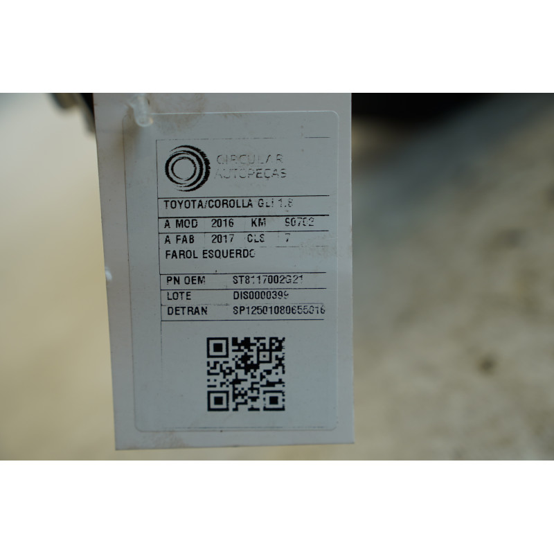 FAROL DIANTEIRO ESQUERDO TOYOTA COROLLA GLI 1.8 FLEX 2016/17