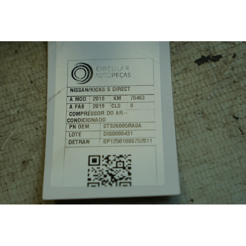 COMPRESSOR AR-CONDICIONADO NISSAN KICKS S DIRECT 1.6 2019