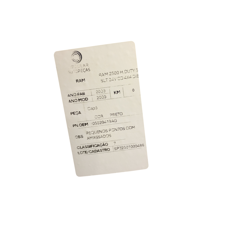 • Veículo de origem: RAM 2500 H.DUTY 5.9 SLT 24V CD 4X4 DIE