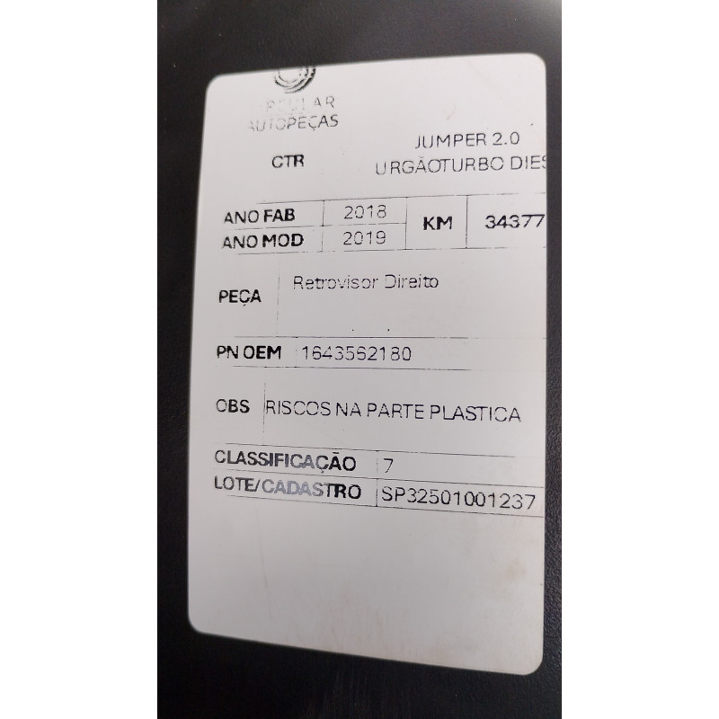 RETROVISOR DIREITO CITROËN JUMPER 2.0 FURGÃO TURBO 2018/19