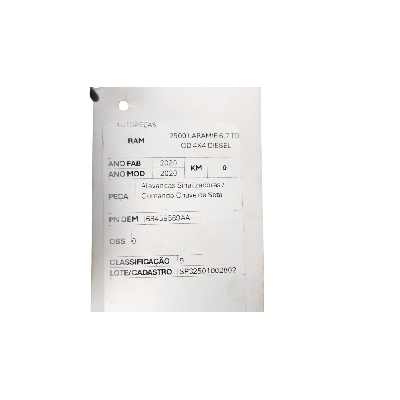 ALAVANCA COMANDO CHAVE SETA RAM 2500 LARAMIE 6.7 TDI 2020