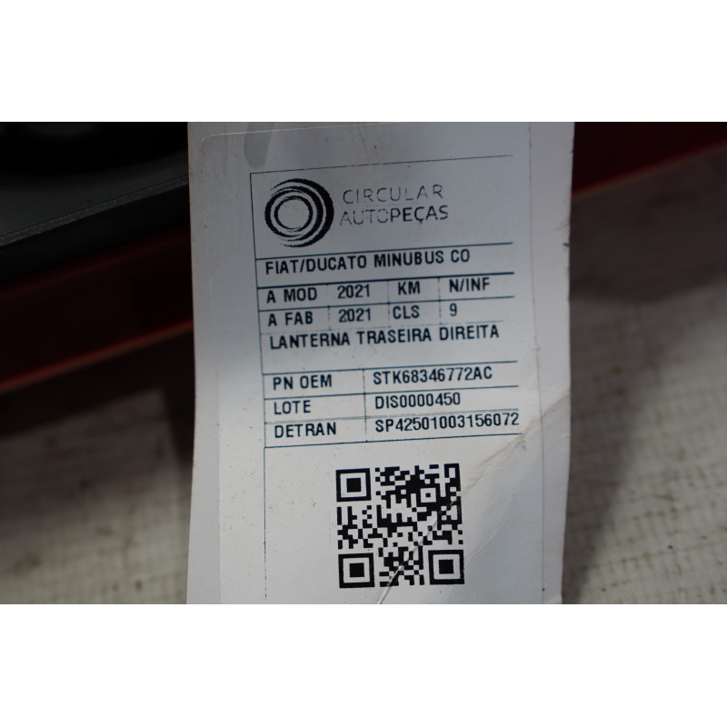LANTERNA TRASEIRA DIREITA FIAT DUCATO MINIBUS COMF. 2.3 2021